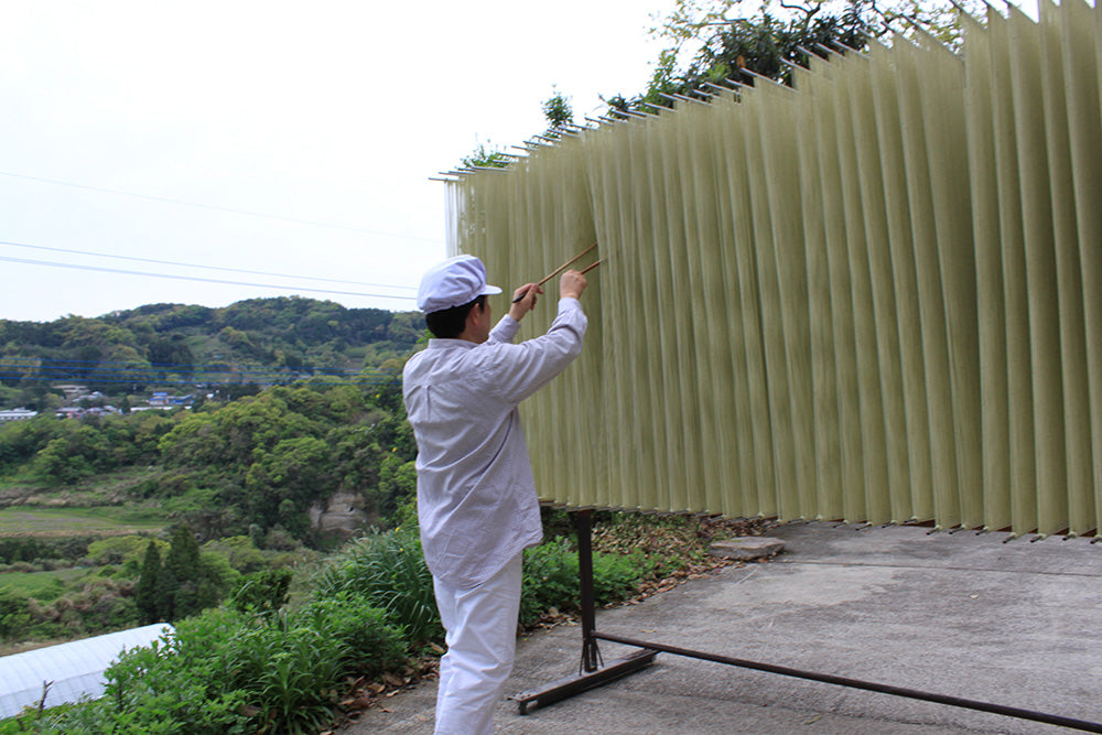 The flavorful taste is brought out by using only carefully selected Hokkaido wheat flour, Mongolian Tengai-ten salt, stone water from Mt. Unzen, and young mugwort leaves until early April. It is characterized by its firmness and umami taste due to craftsmanship and aging.